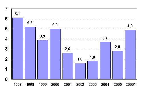 Bruttokansantuote kasvoi 4,9 prosenttia vuonna 2006