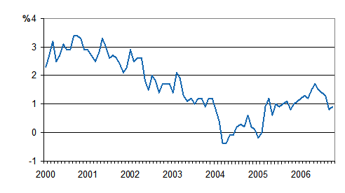 Suomen yhdenmukaistetun kuluttajahintaindeksin vuosimuutos 1/2000 - 11/2006