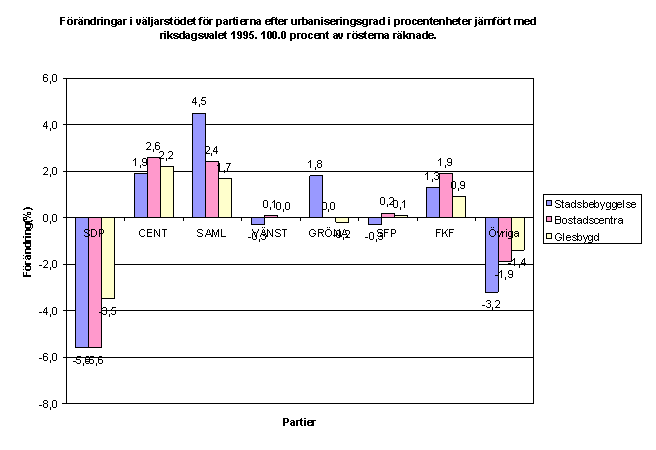 Förändringar i väljarstödet för partierna efter urbaniseringsgrad