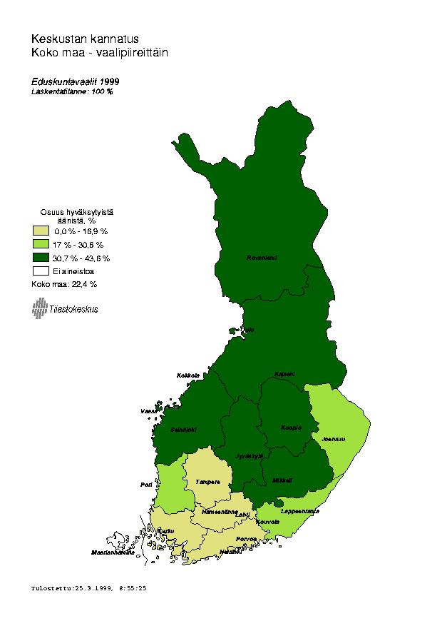 Keskustan kannatus vaalipiireittäin