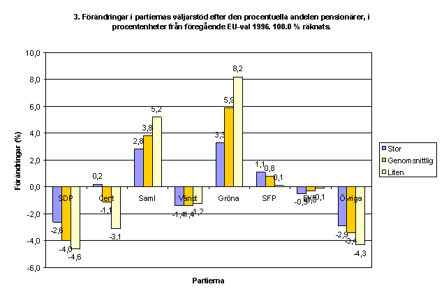 Förändringar i partiernas väljarstöd efter den procentuella andelen pensionärer