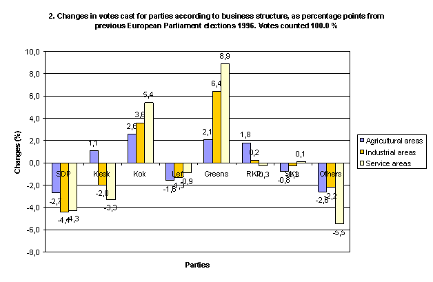 Changes in votes cast for parties according to business structure