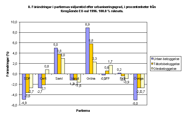 Förändringar i partiernas väljarstöd efter urbaniseringsgrad