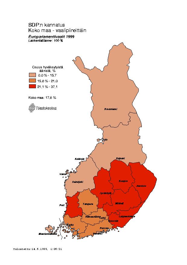SDP:n kannatus vaalipiireittäin