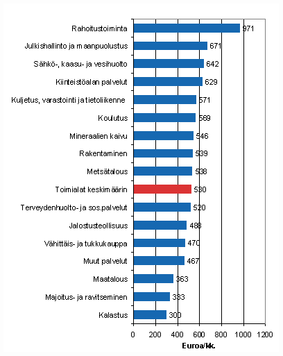 Keskimääräiset bruttokuukausipalkat toimialoittain, 2. neljännes 2005