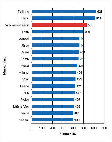 Yleisesti ottaen alueelliset palkkaerot ovat jonkin verran tasoittuneet, sillä minimipalkkojen nousu on ollut suurin juuri maakunnissa (Itä-Virumaa, Etelä-Viro, saaret). Useimmiten kasvukeskusten ulkopuolella maksettava palkka esimerkiksi teollisuustyössä on minimipalkka tai hieman sen yli, kun se taas Tallinnassa on lähempänä keskipalkkaa tai jopa yli. Eroa selittää suurelta osin Tallinnan alueen kohonnut hintataso sekä kasvava työvoimapula.