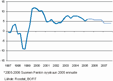 Nopean talouskasvun ja suurten öljytulojen myötä Venäjän inflaatio ja palkat ovat nousseet nopeasti, mikä yhdessä suhteellisen vakaan ruplan nimelliskurssin kanssa on johtanut ruplan vahvistumiseen reaalisesti. Tämä puolestaan syö yritysten hintakilpailukykyä ja vähentää lyhyen ajan kasvumahdollisuuksia viennin vaikeutumisen ja tuonnin lisääntymisen myötä. Kasvun hidastumisesta huolimatta Venäjällä on hyvät mahdollisuudet säilyttää eurooppalaisittain hyvä 4-6 prosentin kasvuvauhti myös vuosina 2006-2007, mikäli öljyn maailmanmarkkinahinta pysyy suunnilleen vuoden 2005 tasolla.