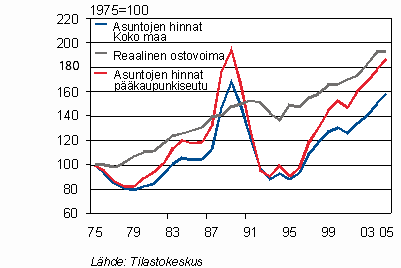 Monien maiden kokemukset asuntomarkkinoiden sykleistä 1970-luvulta lähtien kertovat, että tuntuva ja useita vuosia kestävä hintojen lasku liittyy yleensä merkittävään negatiiviseen muutokseen kansantalouden tilassa - joko korkojen jyrkkään nousuun, työttömyyden kasvuun tai muusta syystä tapahtuvaan kuluttajien tulojen laskuun. Tyypillistä hintojen romahdukselle on ollut myös se, että sitä on edeltänyt erittäin jyrkkä 2-3 vuotta kestänyt nousu. Jälkeenpäin arvioituna vuodet 1987-1989 olivat Helsingin seudun asuntomarkkinoilla malliesimerkki hintakuplan rakentamisesta. Tässä suhteessa nykyinen tilanne on erilainen. Hintojen nousu on ollut hitaampaa ja paremmin linjassa tulojen, varallisuuden, korkojen ja lainanhoitokulujen kanssa.