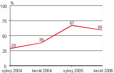 Kuvio 4. Kuntaliitosaikeita lähimmän 10 vuoden aikana kuntapäättäjien mukaan syksystä 2004 kevääseen 2006